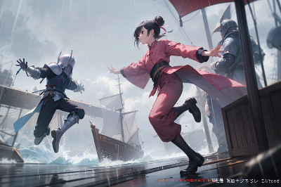 本日のお題「雨音」にちなみ、以前も試みむしたが、こちらの拙著、大航海時代風世界を舞台にした海洋冒険ファンタジー小説 『El Pirata Del Grimorio ~魔導書の海賊~』 (※下記URL参照) に登場する主要キャラの海賊の一人、東方人のカンフーロリ少女、陳露華(チェンルゥファ)が雨降る船上で闘うシーンを作成。 ちょっと顔が作画崩壊しましたが……(;´д`)