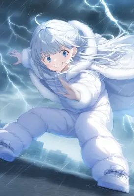 {{{{{down jacket, snowsuit, long stitched padded puffy pants, big long fluffy fur-trimmed cape}}}}}, {{{heavy clothes, fur-trimmed sleeves, fur-trimmed cuffs, fur-trimmed hood, oversized clothes, shiny clothes}}}, [[[latex]]], cute girl, solo, [[[[[[[[[[gochuumon wa usagi desu ka?]]]]]]]]]], mittens, {{{{{indoors, bedroom, bed, lying, heart-shaped pupils, reaching, fluffy blanket, dutch angle}}}}}, {{{gray hair}}}, blue eyes, white jacket, white pants, long hair, blunt bangs, french braid, severed hair, , best quality, amazing quality, very aesthetic, absurdres