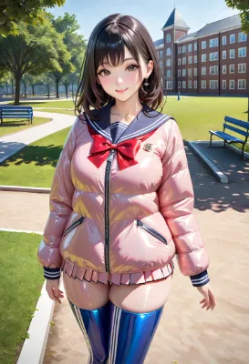 (photorealistic:1.4), (RAW photo), masterpiece, best quality, extremely detailed, lady, cyborg, office clerk, neat and clean, elegant, black long hair, almond eyes, smile, (mechanical:1.4), (metallic, silver:1.2), pink, high-necked body suit, breastplate, corset, long gloves, knee-high boots, standing, office, conference room