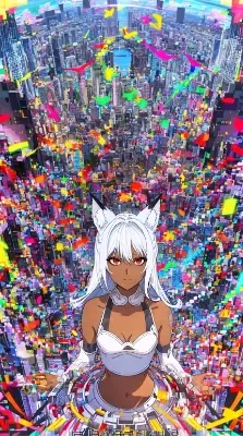 (bright colors:1.10), (transparent colors:1.10), (solo:1.20), (dark skinned female:1.20), (fox ears:1.20), (black separated t-shirt:1.10), simple long dress, midriff, detached sleeves, (white hair), small chest, red eyes, bare shoulders, BREAK extremely detailed, (magnificent view:1.30), viewer from above, (killer queen:1.10), story teller, <lora:Moxin_Shukezouma11:0.20> <lora:fladdict-watercolor-sd-1-5:0.20> <lora:KM_NarutoS-V2:0.70>