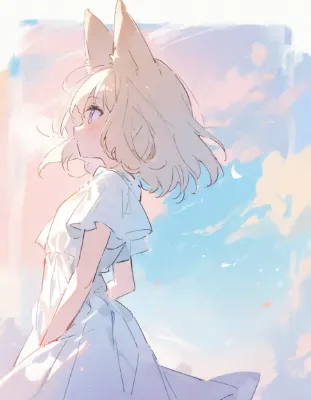 1girl, [ satono diamond \(umamusume\)::1],[(blue archive:0.6):(arknights:0.6):10], masterpiece, high score, great score, absurdres,preteen female, solo,partial upper body,fox ears,medium blonde hair,pleated skirt, shirt,summer dress,[(photographic background:0.9), outdoors,dusk,gradient sky:1],[(warm lighting,shadow:0.9):1],[aged down:1],[isolated subject,distinct outline::3],[aged down:1],[sketch:10],[(unfinished:1.2):10],[action,wind::2]