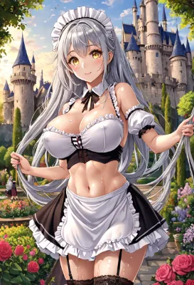masterpiece, best quality, extremely detailed, anime, 1old man, male focus, solo, white hair, white eyebrows, white beard, white facial hair, white mustache, muscular, strong arms, powerful pectoralis major muscle, christmas costume, red trench coat, closed jacket, santa cap, red fingerless gloves, crossing arms, standing, spread leg, winter, snow field, christmas tree, adult raindeers,
