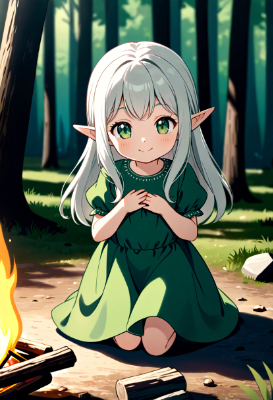 エルフの森から少し離れた風の高原の山頂 ① 風の精霊シルフィード🌪️(16)「やぁやぁ!今日はかわいいエルフちゃん達3人揃って遠くからあたしのところまでご苦労さん♪」 この妖精さんが風の精霊? ② シルフィ「おや?そこの人間にもあたしの姿が見えてるんだね〜そだよ!あたしが四大精霊の1人風のシルフィード、長いからシルフィでいいよ!で、森のエルフがあたしに何の用なのかな?」 ③ 次女ルビア⚡️(14)「じ、実は僕達の村が残虐非道な人間共に襲われ、両親も失い、生き残ったのは僕達エルフ三姉妹だけなんです!」 ④ 三女ジェーダ💪(12)「その下劣な人間共があたし達の森を破壊してゴルフ場⛳️を作ろうと企んでいるんです!」 ⑤ 長女エメラルダ🏹(16)「このままではいずれ私達も滅ぼされ森もめちゃくちゃになってしまいます!風の精霊様どうか私達に力をお貸しください!」 ⑥ シルフィ「人間がエルフの森を破壊して、ゴルフ場をね〜…確かに身勝手すぎるし、大精霊様の怒りにも触れるから自然界のバランスを崩されかねない!あたしなら、風や天候を制御できるけど、罪のない人間まで巻き込むのはちょっとね…」 エメラルダ「そうですよね…難しいですよね…」 シルフィ「あ、でも…森に侵入できないようにすることならできるかも!ちょっと手間かかるけどさ…」 エメラルダ「ほ、本当ですか⁉️」 ⑦ シルフィ「あたし達四大精霊はすぐに連絡できるからね〜ゲーム対決する程の仲だし(過去のお題ゲームを見てください)とりあえず森に住んでる大地の精霊に伝えてみるよ!ある妖精が導いてくれるはずだから!ゴメンね!あたしにはこれしかできないけど、地なら森のことならなんでも知ってるよ!」 エメラルダ/ルビア/ジェーダ「あ、ありがとうございます‼️風の精霊様🙇♀️」 うちの子看板娘のシルフィちゃん久しぶりです!見た目は妖精なので、今回のお題でもいけるかと思いました♪