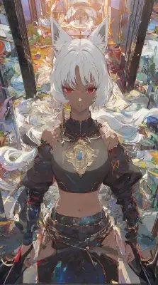 (bright colors:1.10), (transparent colors:1.10), (solo:1.20), (dark skinned female:1.20), (fox ears:1.20), (black separated t-shirt:1.10), simple long dress, midriff, detached sleeves, (white hair), small chest, red eyes, bare shoulders, BREAK extremely detailed, mirrors, (magnificent view:1.30), viewer from above, (killer queen:1.10), story teller, <lora:Moxin_Shukezouma11:0.20> <lora:fladdict-watercolor-sd-1-5:0.20> <lora:KM_NarutoS-V2:0.70>