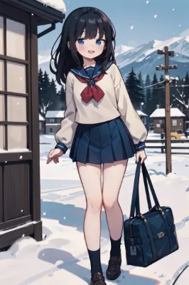 Ski Sprint, Ski sprint, ski sprint( super detailed), top quality, high definition, Genius Female Skier, ski stock on both hands, Skis on both feet, Sports photography, Snow Slope, 8K Anime Art, It's snowing, girl, Very beautiful girl, cinematic lighting, student, 傑作 <lora:hairdetailer:1>