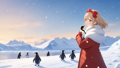 1girl,solo,(blonde hair:1.2),short bob cut,blue eyes,(hair bow:1.4),red bow,(surprised expression:1.2),curious face,(adventurer outfit:1.2),brown leather boots,leather belt,adventure backpack,white blouse,brown vest,short brown skirt,(inside cave:1.3),(multiple candles:1.4),(glowing candles:1.3),candlelight,magical atmosphere,stone walls,crystal formations,standing pose,hands on hips,head slightly tilted,(looking around:1.2),feet slightly apart,medieval fantasy,sparkles,ambient lighting,(masterpiece:1.4),(best quality:1.4),(very aesthetic:1.3),(absurdres:1.3),