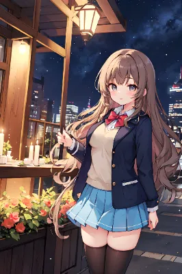 16 year old girl, long wavy brown hair (eye color light blue: 1.2),