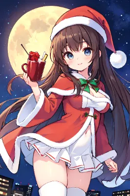 Masterpiece, Top Quality, Details, Super Detail, High Definition, 4K, Absurd, Sharp Quality, Sharp Focus, Beautiful, Top Quality, High Definition, Beautiful, Super Detailed Description, 16 Year Old Girl, Long Wavy brown hair (eyes) color light Blue: 1.2), big breasts, giving a Christmas present, giving a Christmas present, daytime, winter, school, school rooftop, sunset, high school girl, miniskirt, absolute territory, evening school, sunset, blush, happy smile