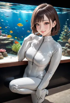 (photorealistic:1.4), (RAW photo), masterpiece, best quality, extremely detailed, lady, cool beauty, elegant, neat and clean, black long hair, almond eyes, smile, stylish, (shiny white down coat:1.2), closed zipper, (shiny white knee-high boots:1.3), black rubber leotard, black pantyhose, window shopping, boots boutique, shopping district, evening, illumination, Christmas tree