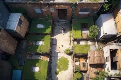 <lora:flat1:-0.7>, <lora:noline:0.8>, absurdres, highres, masterpiece, best quality, super fine illustration, ultra-detailed, 8k wallpaper, RAW photo background, (from above:1.1), sense of depth, ultra-detailed background, impact art, incredibly motley landscape, (vivid colors:1.2), bustling and lively space, blue night sky, no cloud, no star, lamp lighting