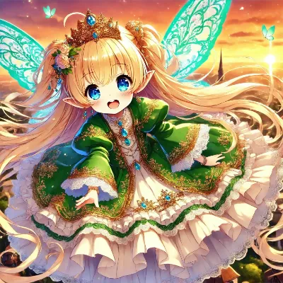 プロンプト: 「1人のとても小柄な女性。とても背の低く、とても長く明るい金髪、とても長くまっすぐ流れるようなストレートヘア。身長はとても低く、パステルピンクのフリルブラウスを着ている。水色のロングスカートにはたっぷりとフリルが幾重にも重なり、水色のロングスカートは多くのフリルとレースで豪華に飾られている。ロングスカートの裾やウエスト部分にもフリルとレースの装飾が豪華に施されて、裾まで華やかに広がっている。首元には水色のリボンをつけている。ウエストに水色のリボンをつけている。非常に小柄で可愛く、非常に低い背であり、顔を赤くして笑顔を浮かべていている。非常に長く明るい金髪のストレートヘアが広がっている。青い目。自然豊かな田舎の町を歩いている。季節は春。とても背が低い。とても小柄な姿を後ろから見た絵。全体がアニメ風に描かれ、非常に詳細な描写。アスペクト比は縦長」の絵を描いて
