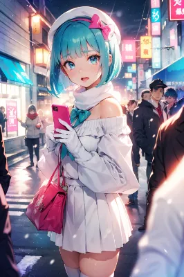 冬の夜空にはちらちらと雪が舞い、街灯の下で白い息が薄く広がる。繁華街は年末の喧騒に包まれ、行き交う人々の声と笑顔が溢れている。その中で俺は、指定された待ち合わせ場所で彼女を待っていた。 腕時計を見ると、約束の時間を10分過ぎている。寒さがコートを通じて骨身に染みる。手袋をした手でポケットからスマートフォンを取り出し、もう一度メッセージを確認した。 "〇〇駅の北口、19時集合ね—。" そう確かに書かれている。 彼女が遅れるのは珍しい。彼女——赤い革ジャンを羽織り、黒いミニスカートと黒いパンストが似合うあの清楚でいてスタイリッシュな姿——を思い浮かべる。いつもきちんとしていて、頼りがいがあるのに、どこか抜けた可愛らしさを持つ。そんな彼女が時間に遅れるとは思えない。少し心配になってきた。 足元に積もり始めた雪を見つめながら、周りを見回す。しかし、どこにも彼女らしき人影はない。吐き出す息が白く消えるたび、不安が胸の奥に広がっていく。人々の流れに目を凝らしても、赤い革ジャンは見当たらない。 「何かあったのか?」 自分の中で様々な可能性が浮かび上がる。電話をかけようか迷いながら、彼女の笑顔を思い出す。いつも少し照れたように微笑むあの表情。胸が締め付けられる。 意を決して電話をかけた。コール音が数回鳴った後、彼女の声が聞こえる。 「あ、ごめんね!どこにいる?」 その声にはいつもの明るさが含まれていた。ホッとした反面、疑問が湧く。 「いや、こっちのセリフだよ。北口の時計台の下で待ってるけど、どこにもいないじゃん。」 少し間が空いた後、彼女が申し訳なさそうに答える。 「えっ…駅の…北口?私、南口で待ってる!」 「えっ!?マジかよ…。」 思わずため息が漏れる。彼女らしいと言えば彼女らしいミスだ。真面目でしっかりしているけど、時々信じられないくらいのうっかりをする。 「わかった。そっちに行くから、動かないで。」 「うん、ごめんね!」 電話を切り、駅の反対側へ急ぐ。冷たい風が頬を刺すが、心の中では不思議と笑みが浮かんでいた。雪が肩に積もるのも気にせず、小走りで向かう。 駅の南口に着くと、すぐに彼女の姿が目に入る。赤い革ジャンが街灯の下で映えている。長い赤髪が雪の中で揺れ、黒いパンスト越しに細い足が目に飛び込む。やっぱり彼女は、どんな人混みの中でも目を引く存在だ。 「ごめん、待った?」 彼女が少し恥ずかしそうに笑う。その笑顔を見るだけで、すべての苛立ちが消えてしまう自分がいる。 「まあ…ちょっとだけな。」 軽く肩をすくめると、彼女が俺の腕にそっと手を絡めてきた。 「今日は特別な夜なんだから、怒らないでよ。」 その言葉に思わず笑みがこぼれる。「仕方ないな。次からはちゃんと確認してくれよ?」 「うん、約束!」 雪が舞い散る中、二人で歩き始める。年末の喧騒も、降り積もる雪も、彼女の隣ではどこか遠くに感じる。赤い革ジャンの温もりが、冬の寒さを忘れさせてくれる。