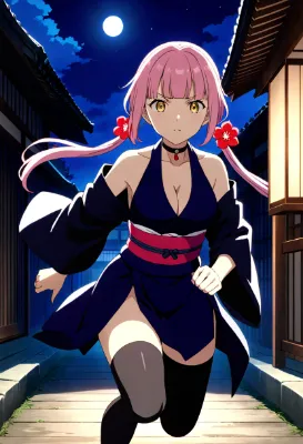 1girl, solo, kawaii, 15yo, small breasts, princess, luxury dress, frilled dress, blue and white dress, cleavage, pink skirt, white choker, beautiful detailed face and eyes, smile, (pale purple hair:1.2), long hair, wavy hair, blunt bangs, red eyes, flower diadem, flower hair ornaments, castle, luxury garden, pathway, night, (fantasy:1.3), anime screencap, anime artwork, anime style, key visual, vibrant, studio anime, masterpiece, best quality
