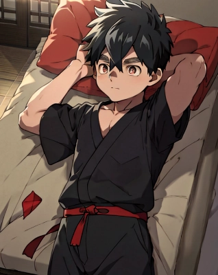 (score_9,score_8_up),(half-body picture),solo, ((male child),(<lora:kagamine len:0.7> kagamine len, <lora:kagamine len-000004:0.7> kagamine len, yellow hair, hair between eyes, closed eyes,),looking viewer, white karate gi), happy + smile, male focus,curious, sitting + fighting_stance,happy + big smile,open mouth, blush, japanese living room + tatami, happy birthday, birthday cake on wooden table, caustics on birthday cake,, best quality, amazing quality, very aesthetic, absurdres