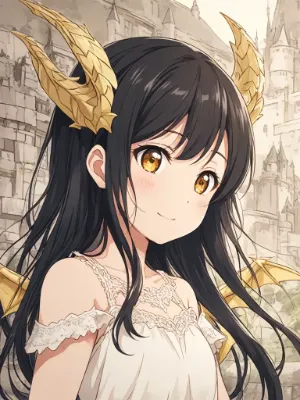 Watercolor, Love Live style, upper body,, blush, (masterpiece), (best smile quality), loli, wind, solo, blue eyes, blonde, short hair, dragon tail, dragon horn, dragon wings,arms behind back, fantasy world, Devil's Castle, Night <lora:hairdetailer:0> <lora:yawanuri:1>