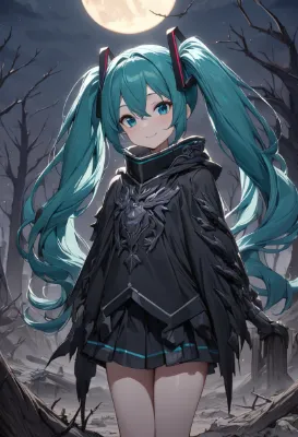 masterpiece, best quality, extremely detailed, anime, girl, Hatsune Miku, VOCALOID, blue-green long twintails, blue eyes, mini skirt, girl in a blue frilly gothic lolita dress, cute, smiling, beautiful girl sticking out her tongue innocently, fountain in a sunlit forest, blue roses blooming, sparkling water splashes, glittering water droplets, fantastical, mysterious