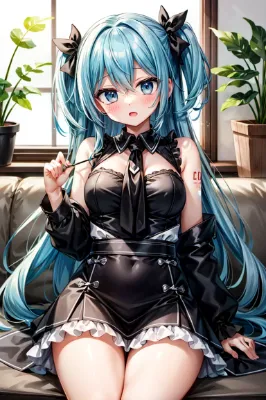 masterpiece, best quality, extremely detailed, anime, girl, 初音ミク, VOCALOID, blue-green long twintails, blue eyes, miniskirt, sleeveless, black long boots, black arm covers, necktie, headphones, beautiful girl, smiling, cute, sunrise from Mount Fuji, red torii gate, mysterious, fantastical, first sunrise