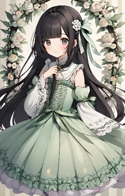 12 years old girl, very longest black hair with flowing straight hair, hair ribbon with mintgreen stripe, black eyes, flat chest, straight across bangs, princess cut, very long sideburn, head, drooping eyes, cute, meekness, bob cut, long back hair, high quality, high resolution, cherry, pinch cherry, Eating
