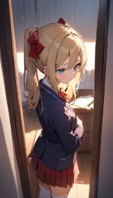 2girls,side tail,blonde hair,blue eyes,(hair bow:1.5),red bow,black hair,straight hair,(side tail:1.5),(side ponytail:1.5),cheerful expressions,running together on an outdoor path,wearing long-sleeved tracksuits,vibrant colors on the jackets and pants,dynamic poses with arms swinging,one girl slightly ahead of the other,sunlight shining through scattered trees along the path,detailed road textures,soft shadows on the ground,cool winter atmosphere,visible breaths in the chilly air (breath:1.2),hair and bows fluttering in the breeze (breeze:1.3),joyful and energetic mood,(masterpiece:1.3),(best quality:1.3),very aesthetic,absurdres,