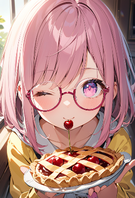 masterpiece, best quality, extremely detailed, 1 girl, 8yo, (red-rimmed glasses), pink hair, side ponytail, pink eyes, tilted head, yellow Quilted coat with floral decorations, (pale-yellow plum blooms) blooming on branches at the low mountain slopes, lips closed pale-yellow plum blooms, happy, (from front), small breast