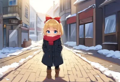 {{nsfw}},1girl,solo,loli,short hair,blonde hair,blue eyes,hair bow,red bow,smile, short dress, randoseru,red backpack,high socks,long sleeves, winter,city,standing,skirt lift by myself,outdoors,print elasticized cotton panties,cameltoe,, rating:general, best quality, very aesthetic, absurdres