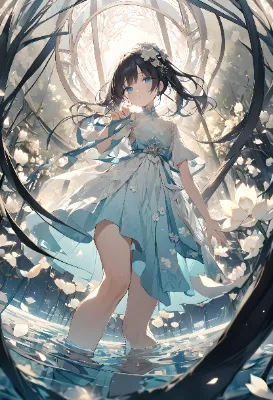 Masterpiece, best quality, one girl, magic school student, wearing a mystical robe styled like a uniform, holding a spellbook in one hand and a small pointed hat on her head, nervously riding a broomstick through the air, her skirt fluttering with the wind. The background shows a fantastical sky filled with floating islands and magical creatures