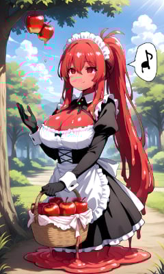 今を時めく妙齢の画家スライム。 元は黄色だが、絵の具を吸収して虹色に。作業中に身体が渇くと、谷間から体内にペットボトルをブッ挿して水を浸透させながら描画する。