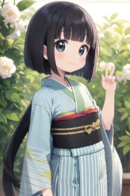 12 years old girl, very longest black hair with flowing straight hair, hair ribbon with mintgreen stripe, black eyes, flat chest, straight across bangs, princess cut, very long sideburn, head, drooping eyes, cute, meekness, bob cut, long back hair, high quality, high resolution, gloves