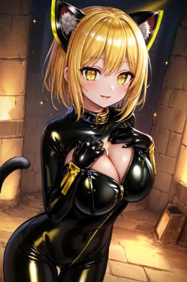 masterpiece, best quality, beautiful, ultra detailed, hyper extreme detailed, anime, 1girl, (beautiful girl), (medium breasts), (silver hair, two side up), (cute pink girl costume:1.8), (collared collar), (cat paw glove with paw pads:1.6), (yellow hairband), (ecstatic expression:1.3), (looking away:1.2), <lora:flat1:-1> <lora:hime_style-1.0r8:0.7>