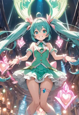 masterpiece, best quality, extremely detailed, anime, girl, Hatsune Miku, VOCALOID, long twin tails in teal, blue eyes, girl, miniskirt, blue clear fairy wings on a pink frilly gothic lolita style bikini, elf, forest sanctuary with sunlight filtering through trees, waterfall, stream, sparkling water splashes, fantastical, mysterious, fantasy, paradise