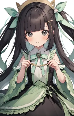 12 years old girl, very longest black hair with flowing straight hair, hair ribbon with mintgreen stripe, black eyes, flat chest, straight across bangs, princess cut, very long sideburn, head, drooping eyes, cute, meekness, bob cut, long back hair, high quality, high resolution