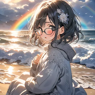 (Roughly drawn dreamy watercolor:1.2), rating:general, newest, hairpin theme, close-up, (decorative hairpins in a girl's hair:1.5), solo , intricate designs, sparkling gems, subtle elegance, styled hair, soft lighting, feminine charm, fashion accessory focus, black hair, black inner hair, bob cut, black eyes, wearing fashionable glasses, <lora:saturation:-0.35> <lora:yawanuri:1>