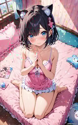 (best quality),(masterpiece),(ultra detailed),masterpiece,high-resolution,ultimate detail, best quality, illustration, cute girl, lying, low twintails, yellow bra, beautiful large breast, navel, panties, unbuttoned jeans, pov, blush, smile