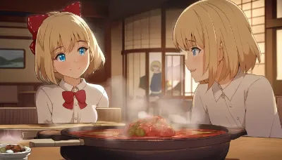 2girls,solo,teenage,(hiking scene:1.3),(mountain trail:1.2),(blonde short bob cut hair:1.1),(hair bow:1.4),(red bow:1.2),blue eyes,(black long straight hair:1.1),round brown eyes,(scout uniform:1.3),khaki shorts,green button-up shirt,hiking boots,backpacks,side by side walking pose,(slight forward lean:1.1),looking forward,daytime mountain landscape,pine trees,rocky path,distant mountain peaks,soft sunlight,(wind effects:1.1),walking carefully,cheerful expression,(anime style:1.3),(masterpiece:1.2),(best quality:1.2),very aesthetic,(absurdres:1.3),