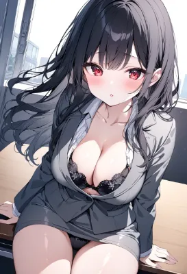 gray business suit, gray jacket, white shirt, medium breasts, gray tight skirt, cream yellow coat,