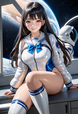 (photorealistic:1.4), (RAW photo), masterpiece, best quality, extremely detailed, lady, neat and clean, elegant, polite, shy, black long hair, almond eyes, smile, royal blue leotard, (shiny puffer down jacket:1.2), sailor collar, ribbon bow tie, (black pantyhose, enamel knee high boots:1.1), school, science room