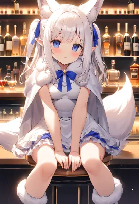 girl, medium breasts, two side up, cute, (white hair), long hair, long white princess dress, long white ruffled skirt, frills,skirt spread out、 white Cape, ruffle Cape, fur Cape,,, bash, blue eyes, parted lips, pointy ears, fox ears, fox tail, fluffy tail, hair ribbon, blue ribbon,,,,