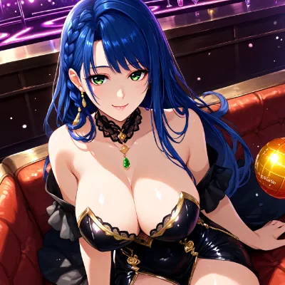 ultra detailed, masterpiece, best quality, aesthetic, beautiful face, beautiful eyes, cute eyes, shiny hair, 1girl, voluptuous body, large breasts, doamarie, blonde hair, twin tails, blue eyes, black hairpin, hair ribbon, <lora:marierose-pdxl-nvwls-v1:0.7>, blue kimono, red rose print kimono, black obi, back view, smile, tongue out, licking, hands stick, stick with cotton, (white cotton:1.2), alone, stalls, night