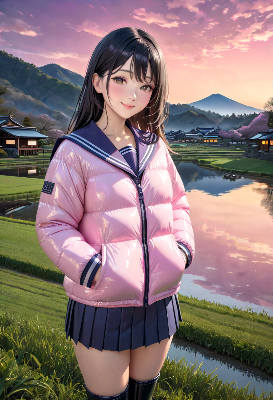 (photorealistic:1.4), (RAW photo), masterpiece, best quality, extremely detailed, lady, nun, neat and clean, elegant, polite, shy, long blonde hair, almond eyes, smile, slim fit, hooded, closed zipper, (shiny white long down coat:1.2), (black leather long gloves:1.1), long boots, (blizzard, sacred flame:1.1), snow cathedral