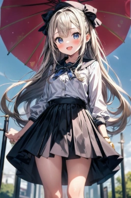 high resolution,best Quality,insanely detailed,anely detailed,a girl,illustration,(fine hair,black eye,drooping eyes,fox girl,black hair,(very long hair),babys face,(Smaller than average height),child),(shrine maiden outfit,(red hakama (e.g. worn by miko or noblewomen at court)),flower hair ornament ,smile,rain,sodden,wet clothes<lora:flat2:0> <lora:hairdetailer:0>,,