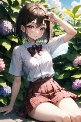 very cute and beautiful girl, (5'tall:1.3), round face, slanted maroon eyes, long eyelashes, pinky lip, short brown bob hair, tiny breasts,