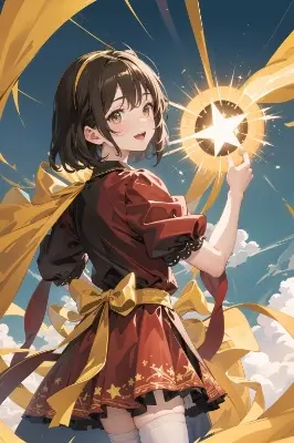 masterpiece, best_quality, ultra-detailed, extremely_detailed_eyes, delicate_and_intricate_hair, looking_at_viewer, solo, 1girl, brown_hair, medium_hair, bangs, orange_eyes, closed_mouth, holding_camera, red_jacket, long_sleeves, hood, hood_down, black_skirt, boots, bag, backpack, indoors, bedroom, bed, frilled_pillow, clock, picture_frame, photo_\(object\), calendar_\(object\)