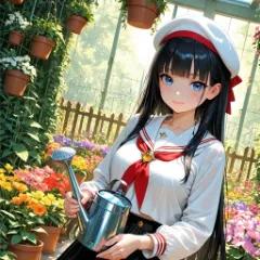 昼休み、校舎裏の小さな花壇に、静かなスコップの音が響く。 紫峰怜花は、まだ慣れない手つきで苗を植えながら、小さく首を傾げた。 「……うーん、ちょっと斜めになっちゃったかも」 「大丈夫です。自然界に“まっすぐ”は、あまり存在しませんから」 声の主、狭霧華蓮は日傘をたたみながら、怜花の隣にしゃがみ込んだ。 そっと隣に並べられた苗は……見たことのない双葉。 「それ、何を植えたの?」 「秘密です」 「えっ、秘密?」 「わたしにも、まだよくわかっていないので」 怜花がきょとんとする。 「この前、家の棚の奥にあった袋に“ミックス”とだけ書いてあって……発芽したので、ひとまず試してみることにしました」 「えっ、ミックス? 食べられるやつ?」 「たぶん……野菜か果物だとは思うのですが、今はまだ……“葉”しかないので」 「ちょっとした実験ね」 「はい。観察日誌も、つけ始めました」 ふたりのあいだに、風が通る。 怜花は自分の植えたラベンダーの苗に目を落とす。柔らかい緑が陽を受け、少しだけ香る。 「このラベンダーが咲いたら、部屋に飾ろうかな」 「では、私の“未知の苗”が実ったら、交換しましょう」 「……実る前提なんだ?」 「夢と植物は、どちらも育てるものですから」 怜花はふっと笑った。 小さな花壇には、名も知れぬ芽と、ふたりだけの秘密がそっと育ち始めている。