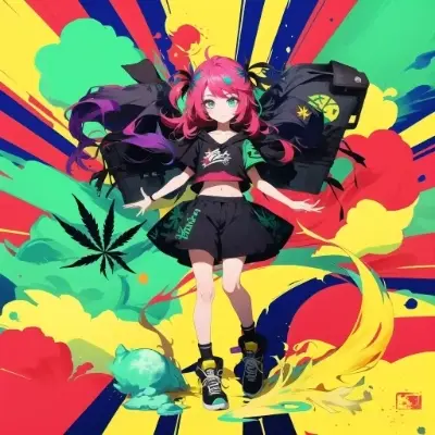 hand on hip,Beautifully detailed and well-drawn backgrounds,grey background,fingersmile, Bright red (hawaiianpatterned:1.3) oversized clothes, shirt, white shorts,standing,1girl, solo, blue eyes,black_hair,long_hair,small_breasts, bangs, hair_between_eyes,