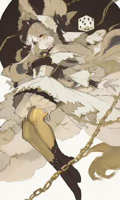 このような衣装を出そうとしました: A delicate white hooded dress with ornate gold embroidery, displayed as if worn by a refined young woman. The dress features a fitted bodice with an elegant clock-face motif at the chest, surrounded by layers of lace and pleated trims. Above the bodice is a wide ivory bow with a central gem-like brooch. The sleeves are long and flared, with gold-trimmed cuffs, and the skirt flares into multiple tiers: the top layer is a jacquard-like damask pattern in ivory white, beneath it is a layer of ivory lace ruffles, and underneath is a pair of loose bloomers edged with lace. Over the dress is a hooded capelet, made of the same white damask fabric, with a pointed hood that frames the face and subtle gold chain accents draping from the shoulders. The hem of the hood and capelet is lined with delicate lace. The hood is shaped like a cat's ears, with a pointy parts., The background is a soft warm-beige gradient with faint candlelight glow. Gentle, diffused lighting highlights the embossed damask texture, golden threads, and the translucency of the lace, making the entire ensemble look ethereal. 華麗なゴールドの刺繍が施された繊細な白いフード付きドレス。 胸元にエレガントな時計の文字盤のモチーフがあしらわれ、その周りを幾重にも重なるレースとプリーツの縁取りが取り囲んでいる。ボディスの上には、中央に宝石のようなブローチをあしらったアイボリーの幅広のリボンがついている。 袖は長めのフレアスリーブで、袖口はゴールドで縁取られ、スカートは何段にもフレアしている。上層はアイボリー・ホワイトのジャカード風ダマスク柄で、その下にはアイボリー・レースのフリルが重なり、その下にはレースで縁取られたゆったりとしたブルマがある。 ドレスの上には同じ白のダマスク生地で作られたフード付きケープレットがあり、尖ったフードが顔を縁取り、肩からさりげなくゴールドのチェーンがアクセントとして垂れ下がっている。フードとケープレットの裾は繊細なレースで裏打ちされている。 フードは猫の耳のような形で、とがったパーツが付いている、 背景はほのかなキャンドルの光を帯びた柔らかなウォームベージュのグラデーション。優しく拡散した照明が、エンボス加工されたダマスクの質感、金糸、レースの透け感を際立たせ、アンサンブル全体を幽玄な雰囲気にしている。