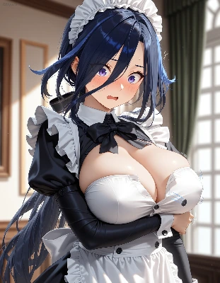 1girl, (clorinde_\(genshin_impact\):0.9), (large_breasts:0.85), alternate_costume, maid, maid_apron, white_apron, two-tone apron, maid_headdress, cleavage, covered_nipples, looking_at_viewer, embarrassed, arm_under_breasts, upper_body, HDR, 8K, safe, (photorealistic, blurry_background, depth_of_field,:1.15), masterpiece,best quality,amazing quality,very aesthetic,absurdres,newest, highres, detailed,