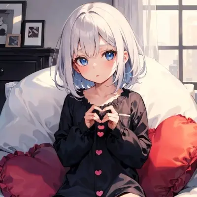 black pajamas,holding heart-shaped cushion,heart-shaped cushion,