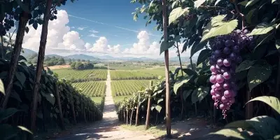 BREAK (vineyard;1.4), a lot of colorful grapes, Vivid and vibrant color palette that ignites the senses
