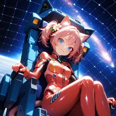 . お題:宇宙 企画参加作品画像 AIピクターズ軍エースパイロット、みやび少佐専用機。 高機動戦闘特化、全体が赤いカラーリングが特徴。 そのカラーリングと天真爛漫な性格で、戦場だけでなくプライベートでも皆の中心的な存在である。 軍上層部に気に入られており、上層部が『専用』に目をつむるだけで無く、積極的に開発局や広報部に圧力をかけている。 部隊の面々にも気に入られており、専用のパイロットスーツや、リニアシートまでも猫耳型になっている。 プロパガンダ放送などにも参加しており、軍の指揮向上を担い、まさにピクターズ軍のアイドルである。 何十枚も作って端末が容量不足警告してきた… イイね👍押して助けてください(:3 っ )3 .
