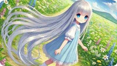 花柄スカート可愛いんですけど微妙に難しいです。 プロンプト: 「1人のとても小柄な女性。とても背が低く、とても長く明るい金髪、とても長くまっすぐ流れるようなストレートヘア。身長はとても低く、白い半袖パフスリーブのシャツの上からパステルピンクの花柄ワンピースを着ている。ワンピースは膝下丈のロングで、裾はレースで装飾されている。優しい笑顔と大きな青い瞳が印象的。非常に小柄な姿で、自然豊かな花畑に座っている。非常に長く明るい金髪のストレートヘアが大きく広がっている。とても背が低い。全身が描かれており、アニメスタイルで繊細かつ美しいイラスト。解像度1024x1792」を描いて。